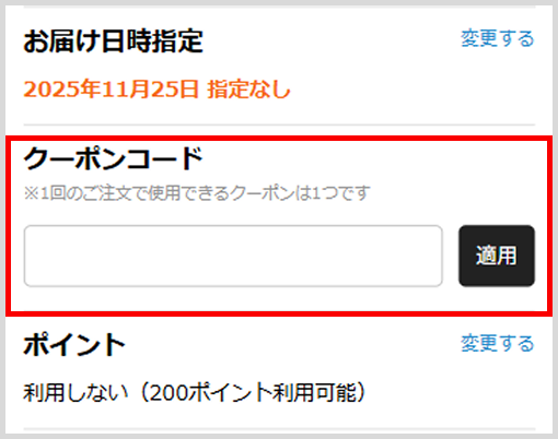 クーポンを入力する画面はこちら