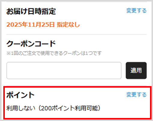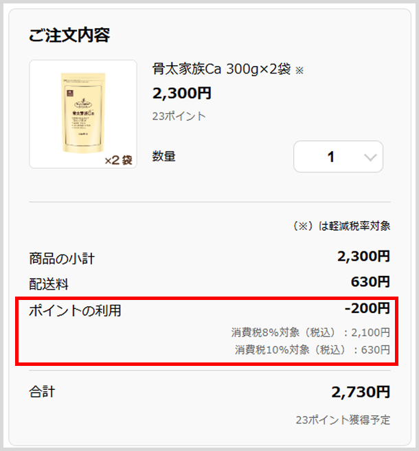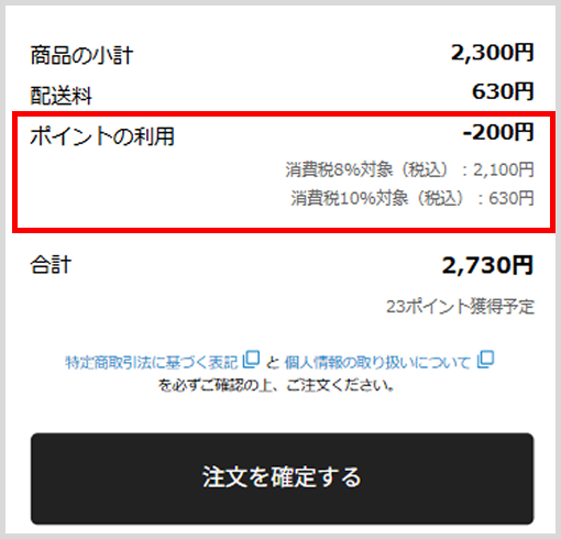 3.「ご注文内容」確認欄で、ポイントが利用された金額になっているかご確認のうえ、注文内容を確定してください。
