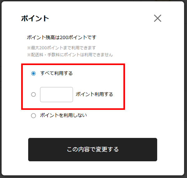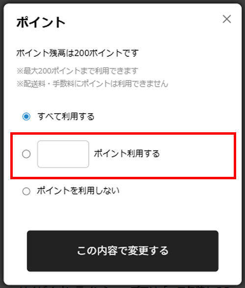 2.「すべて利用する」またはその下を選択し、使用したいポイントを入力してください。
